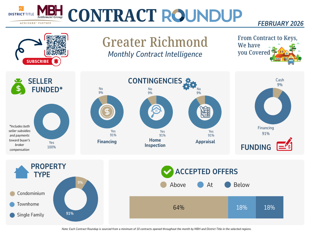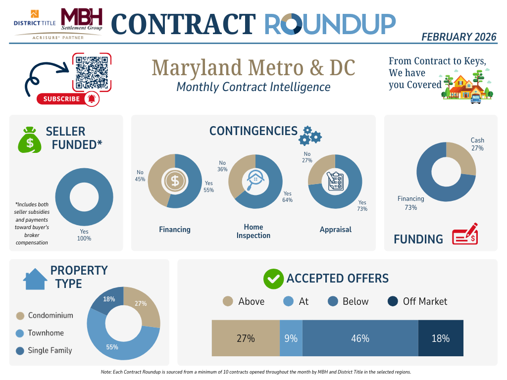 Note: Each Contract Roundup is based on data from a minimum of 10 contracts opened throughout the month by MBH and District Title in the selected regions. Contract Roundup may vary from MLS market data.